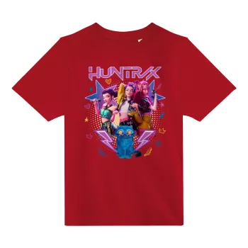 Huntrix K-pop series, Άνετο παιδικό T-Shirt ΚΟΚΚΙΝΟ από 100% βαμβάκι, για κάθε μέρα. Vegan & OEKO-TEX πιστοποιημένο.