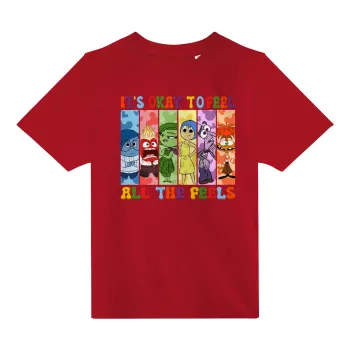Inside Out It's Okay To Feel All The Feels , Άνετο παιδικό T-Shirt ΚΟΚΚΙΝΟ από 100% βαμβάκι, για κάθε μέρα. Vegan & OEKO-TEX πιστοποιημένο.