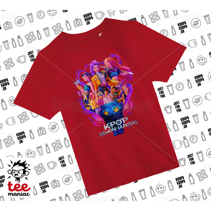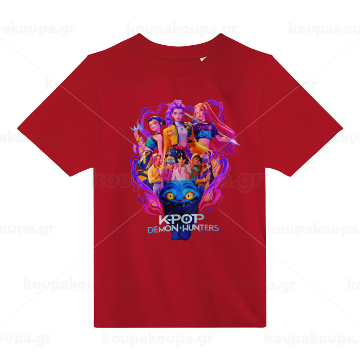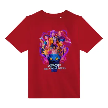 kpop Demon Hunters Huntrix, Άνετο παιδικό T-Shirt ΚΟΚΚΙΝΟ από 100% βαμβάκι, για κάθε μέρα. Vegan & OEKO-TEX πιστοποιημένο.