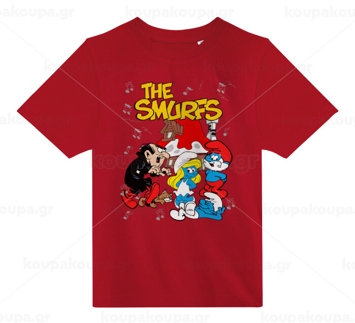 The smurfs, Άνετο παιδικό T-Shirt ΚΟΚΚΙΝΟ από 100% βαμβάκι, για κάθε μέρα. Vegan & OEKO-TEX πιστοποιημένο.