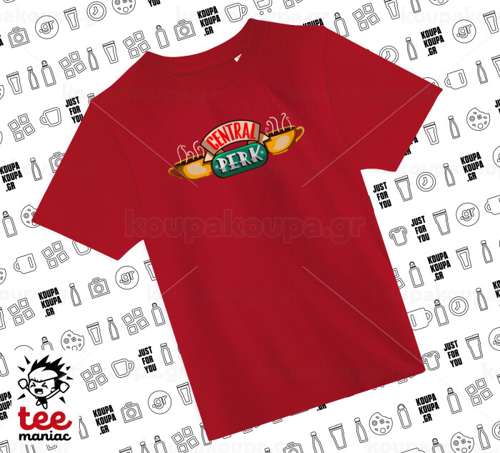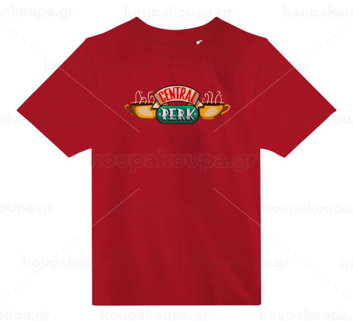 Central perk, Άνετο παιδικό T-Shirt ΚΟΚΚΙΝΟ από 100% βαμβάκι, για κάθε μέρα. Vegan & OEKO-TEX πιστοποιημένο.