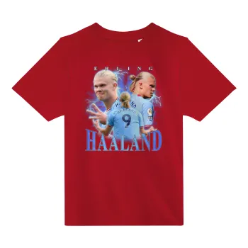 Erling Haaland, Άνετο παιδικό T-Shirt ΚΟΚΚΙΝΟ από 100% βαμβάκι, για κάθε μέρα. Vegan & OEKO-TEX πιστοποιημένο.