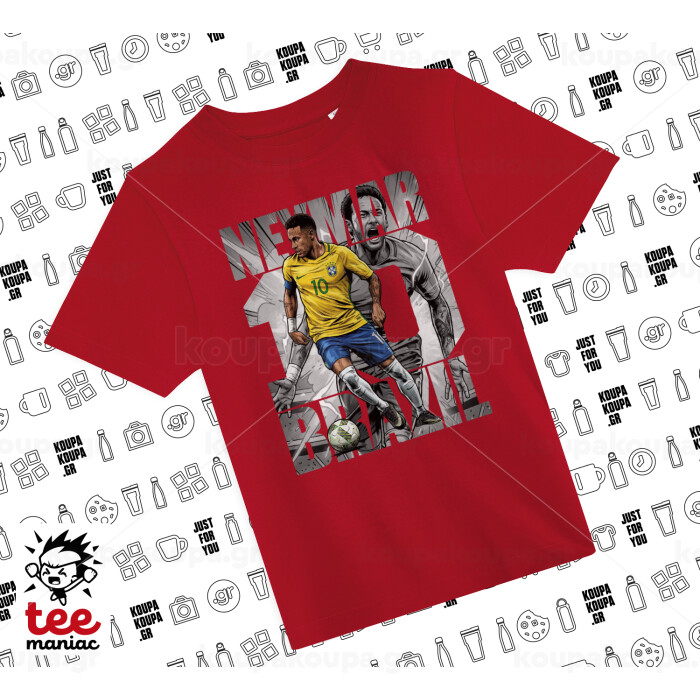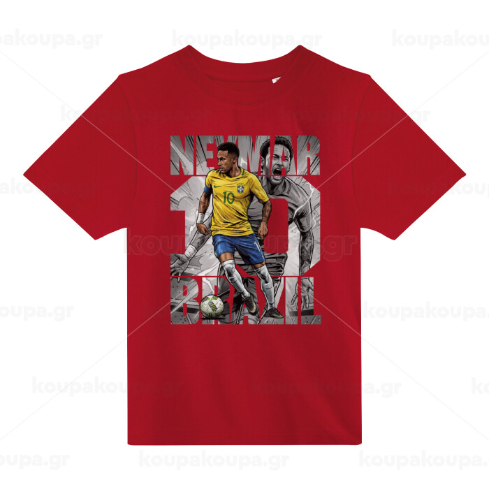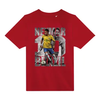 Neymar (Νεϊμάρ), Άνετο παιδικό T-Shirt ΚΟΚΚΙΝΟ από 100% βαμβάκι, για κάθε μέρα. Vegan & OEKO-TEX πιστοποιημένο.