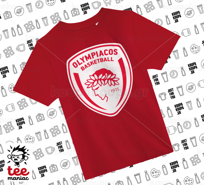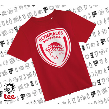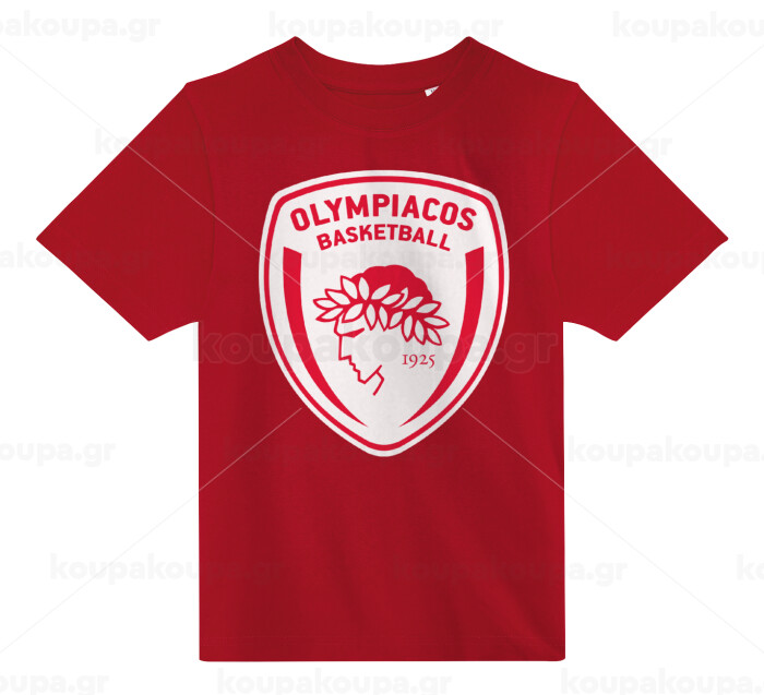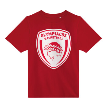 Olympiacos B.C., Άνετο παιδικό T-Shirt ΚΟΚΚΙΝΟ από 100% βαμβάκι, για κάθε μέρα. Vegan & OEKO-TEX πιστοποιημένο.