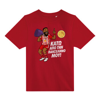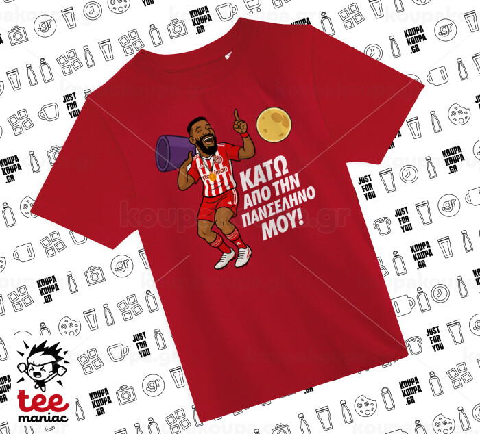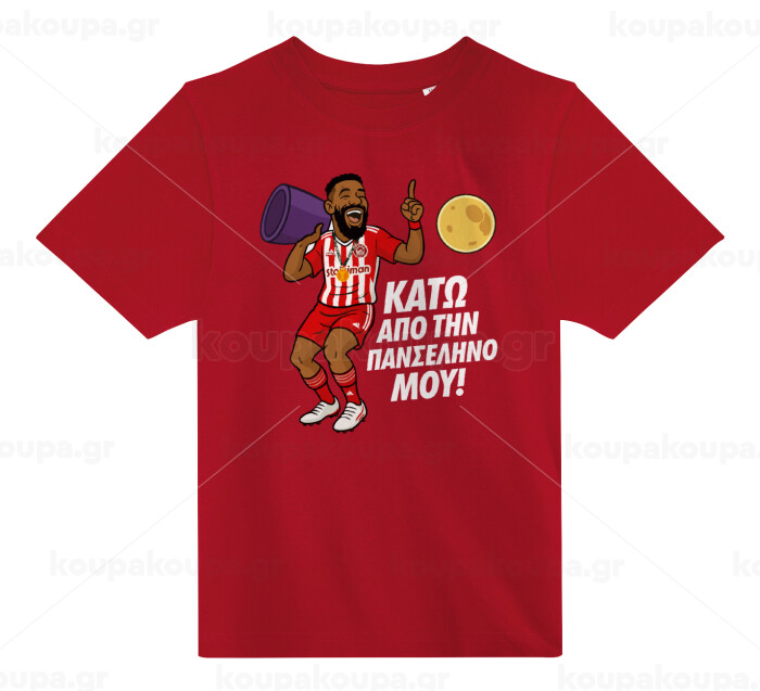 Ροντινέι, "ΚΑΤΩ ΑΠΟ ΤΗΝ ΠΑΝΣΕΛΗΝΟ ΜΟΥ!", Άνετο παιδικό T-Shirt ΚΟΚΚΙΝΟ από 100% βαμβάκι, για κάθε μέρα. Vegan & OEKO-TEX πιστοποιημένο.