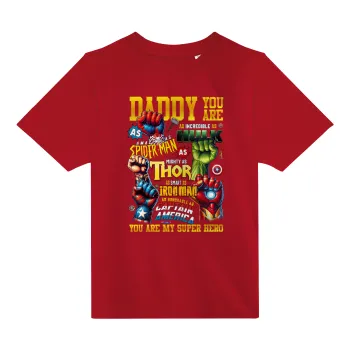 Daddy You Are my Hero, Άνετο παιδικό T-Shirt ΚΟΚΚΙΝΟ από 100% βαμβάκι, για κάθε μέρα. Vegan & OEKO-TEX πιστοποιημένο.
