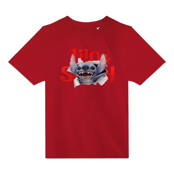 Stitch movie, Άνετο παιδικό T-Shirt ΚΟΚΚΙΝΟ από 100% βαμβάκι, για κάθε μέρα. Vegan & OEKO-TEX πιστοποιημένο.