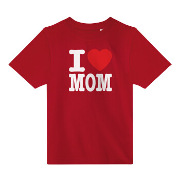 I LOVE MOM, Άνετο παιδικό T-Shirt ΚΟΚΚΙΝΟ από 100% βαμβάκι, για κάθε μέρα. Vegan & OEKO-TEX πιστοποιημένο.