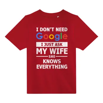 I don't need Google, just ask my WIFE, Άνετο παιδικό T-Shirt ΚΟΚΚΙΝΟ από 100% βαμβάκι, για κάθε μέρα. Vegan & OEKO-TEX πιστοποιημένο.