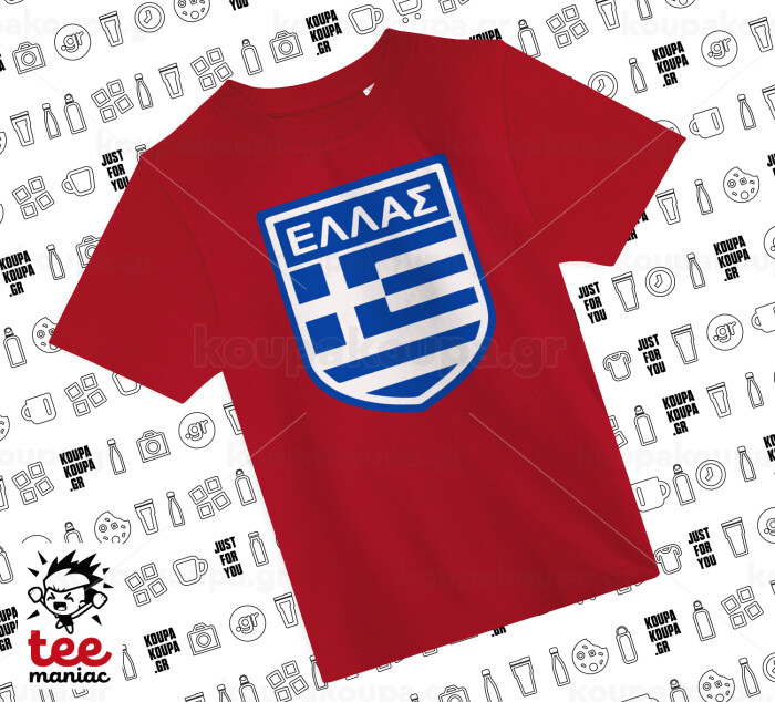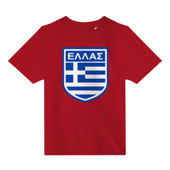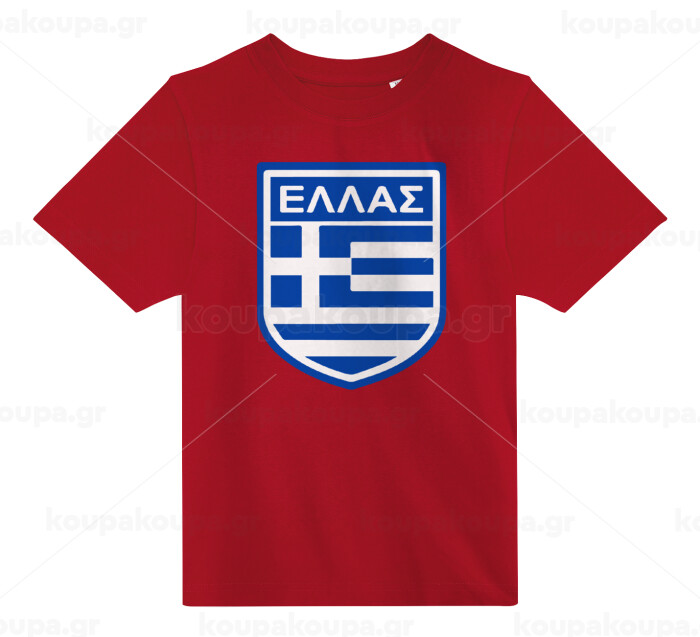 Hellas, Άνετο παιδικό T-Shirt ΚΟΚΚΙΝΟ από 100% βαμβάκι, για κάθε μέρα. Vegan & OEKO-TEX πιστοποιημένο.
