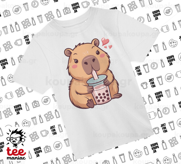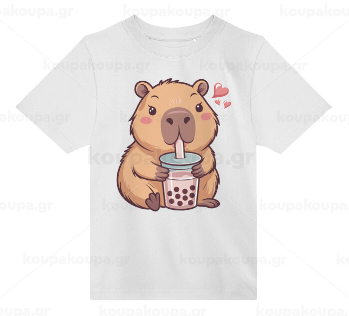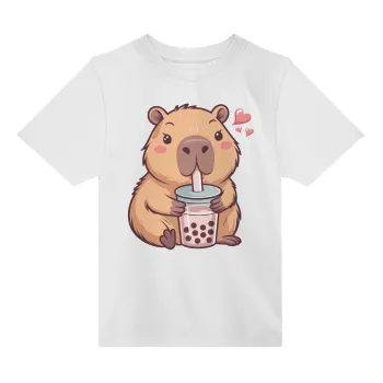 Capybara Bubble Tea, Άνετο παιδικό T-Shirt ΛΕΥΚΟ από 100% βαμβάκι, για κάθε μέρα. Vegan & OEKO-TEX πιστοποιημένο.