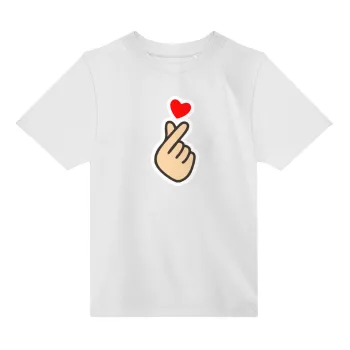 Korean Finger Heart, Άνετο παιδικό T-Shirt ΛΕΥΚΟ από 100% βαμβάκι, για κάθε μέρα. Vegan & OEKO-TEX πιστοποιημένο.