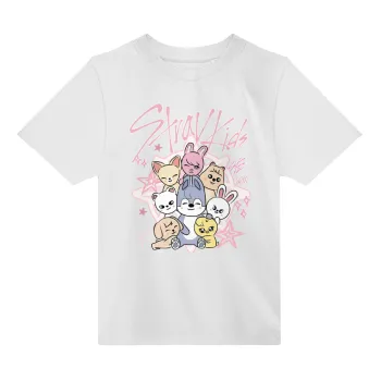 Stray Kids Pink, Άνετο παιδικό T-Shirt ΛΕΥΚΟ από 100% βαμβάκι, για κάθε μέρα. Vegan & OEKO-TEX πιστοποιημένο.