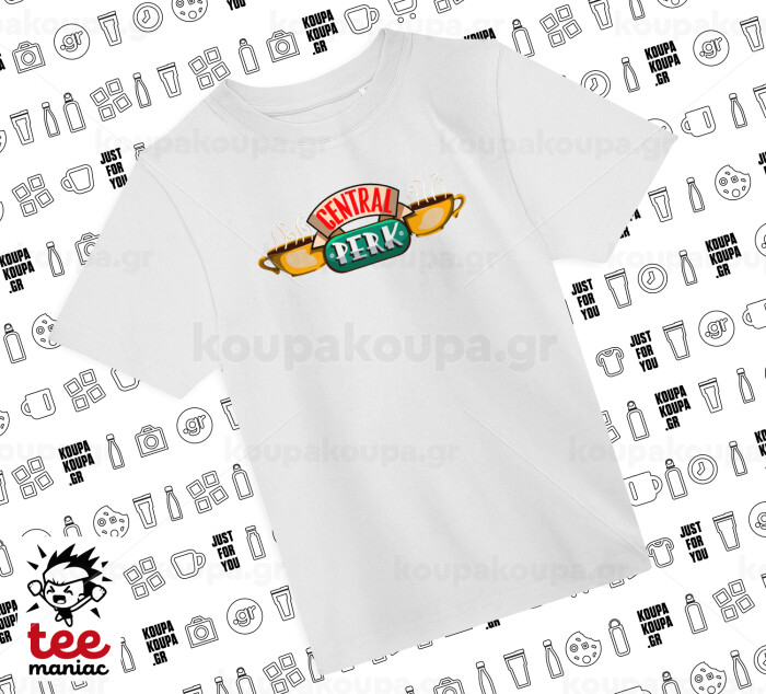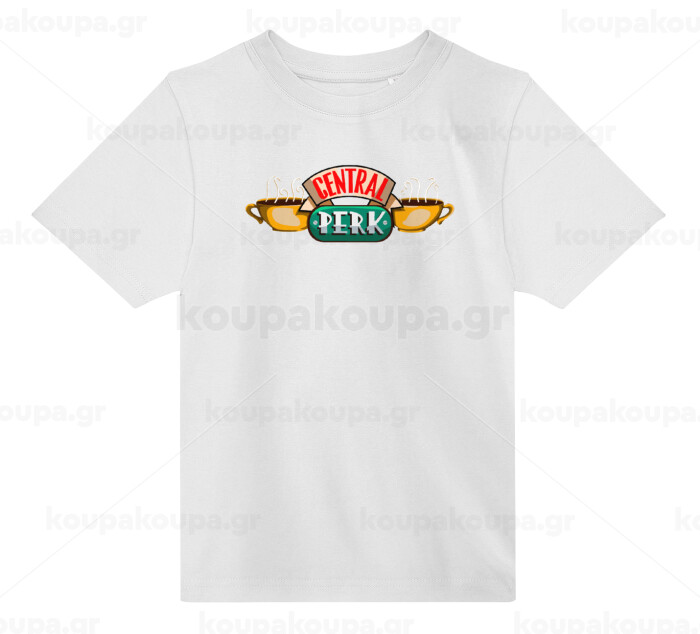 Central perk, Άνετο παιδικό T-Shirt ΛΕΥΚΟ από 100% βαμβάκι, για κάθε μέρα. Vegan & OEKO-TEX πιστοποιημένο.