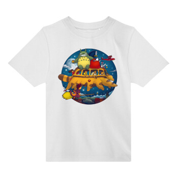 Totoro Catbus, Άνετο παιδικό T-Shirt ΛΕΥΚΟ από 100% βαμβάκι, για κάθε μέρα. Vegan & OEKO-TEX πιστοποιημένο.