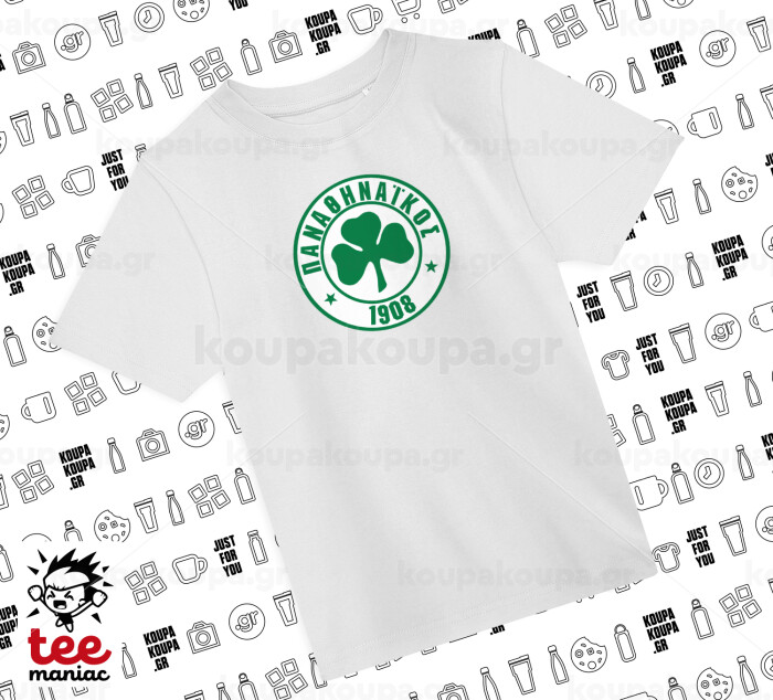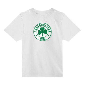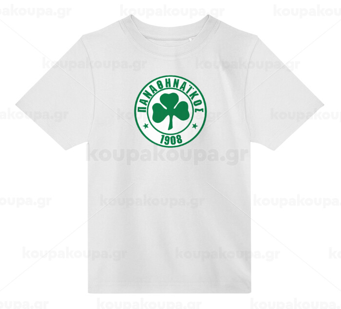 ΠΑΟ Παναθηναϊκός, Άνετο παιδικό T-Shirt ΛΕΥΚΟ από 100% βαμβάκι, για κάθε μέρα. Vegan & OEKO-TEX πιστοποιημένο.