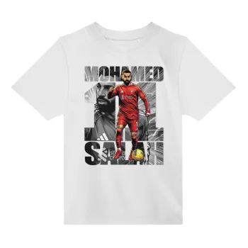 Mohamed Salah (Μοχάμεντ Σαλάχ), Άνετο παιδικό T-Shirt ΛΕΥΚΟ από 100% βαμβάκι, για κάθε μέρα. Vegan & OEKO-TEX πιστοποιημένο.