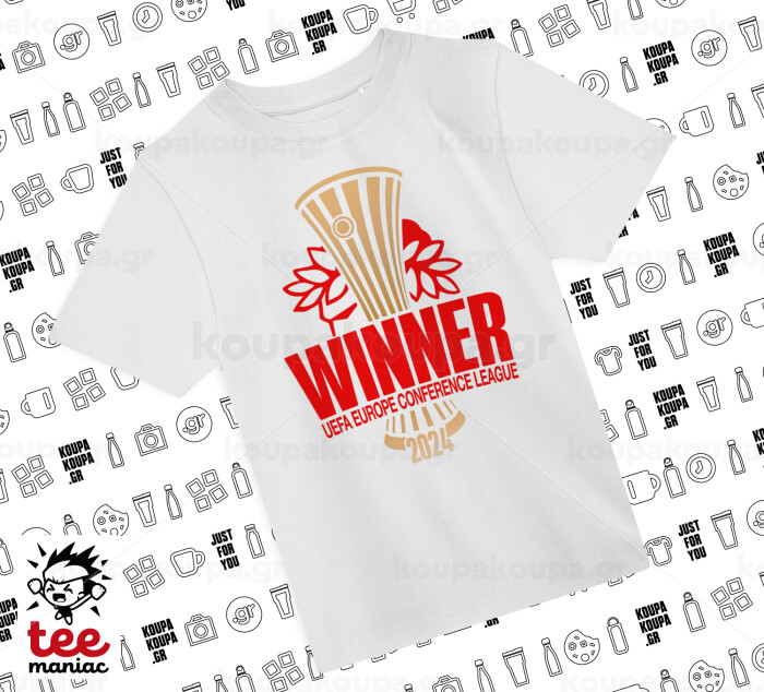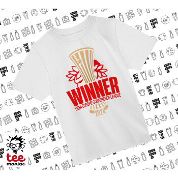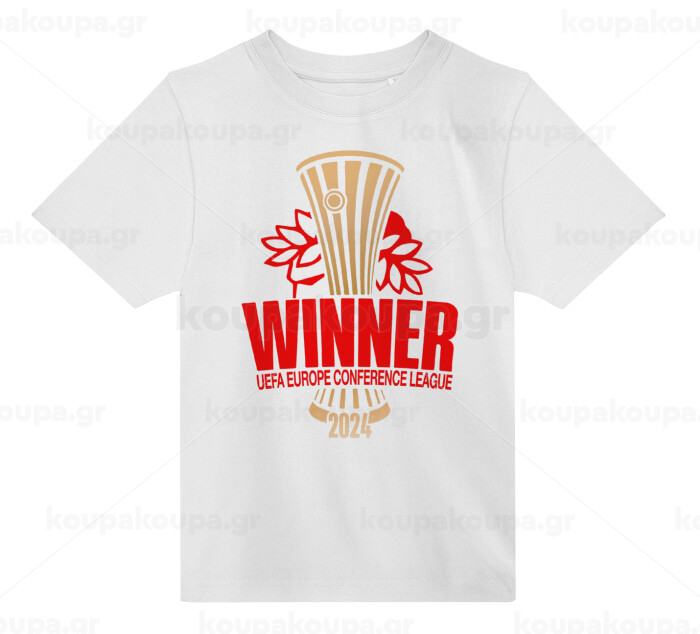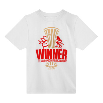 Europa Conference League WINNER, Άνετο παιδικό T-Shirt ΛΕΥΚΟ από 100% βαμβάκι, για κάθε μέρα. Vegan & OEKO-TEX πιστοποιημένο.