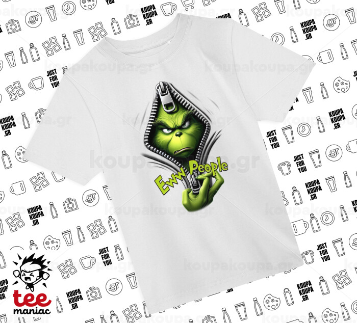 Grinch, eww people, Άνετο παιδικό T-Shirt ΛΕΥΚΟ από 100% βαμβάκι, για κάθε μέρα. Vegan & OEKO-TEX πιστοποιημένο.