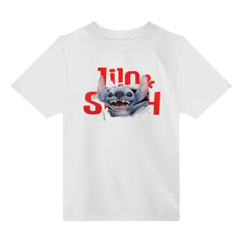 Stitch movie, Άνετο παιδικό T-Shirt ΛΕΥΚΟ από 100% βαμβάκι, για κάθε μέρα. Vegan & OEKO-TEX πιστοποιημένο.