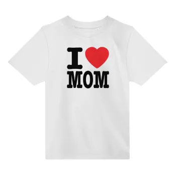 I LOVE MOM, Άνετο παιδικό T-Shirt ΛΕΥΚΟ από 100% βαμβάκι, για κάθε μέρα. Vegan & OEKO-TEX πιστοποιημένο.
