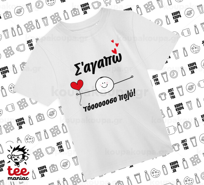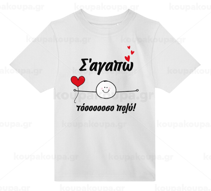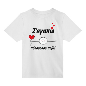 Σ΄αγαπώ τόοοοσο πολύ (Αγόρι)!!!, Άνετο παιδικό T-Shirt ΛΕΥΚΟ από 100% βαμβάκι, για κάθε μέρα. Vegan & OEKO-TEX πιστοποιημένο.