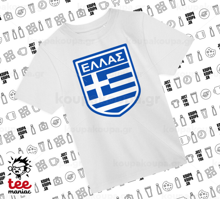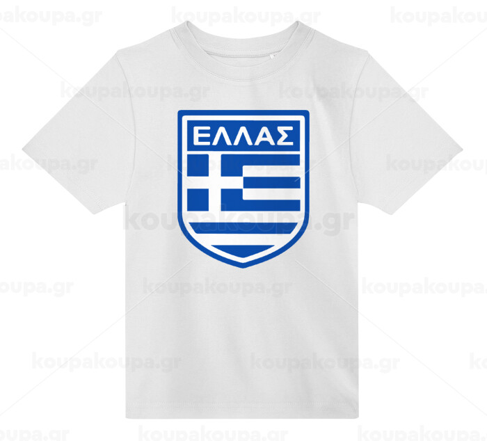 Hellas, Άνετο παιδικό T-Shirt ΛΕΥΚΟ από 100% βαμβάκι, για κάθε μέρα. Vegan & OEKO-TEX πιστοποιημένο.