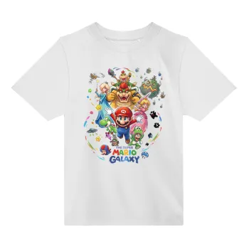 Mario Galaxy, Άνετο παιδικό T-Shirt ΛΕΥΚΟ από 100% βαμβάκι, για κάθε μέρα. Vegan & OEKO-TEX πιστοποιημένο.