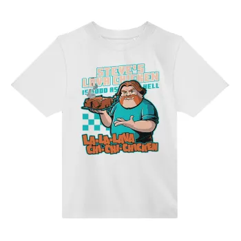 Steves Lava Chicken, Άνετο παιδικό T-Shirt ΛΕΥΚΟ από 100% βαμβάκι, για κάθε μέρα. Vegan & OEKO-TEX πιστοποιημένο.