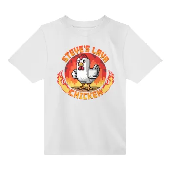 Steve's Lava Chicken, Άνετο παιδικό T-Shirt ΛΕΥΚΟ από 100% βαμβάκι, για κάθε μέρα. Vegan & OEKO-TEX πιστοποιημένο.