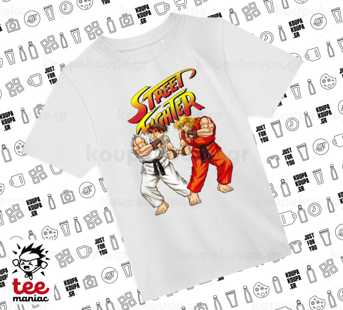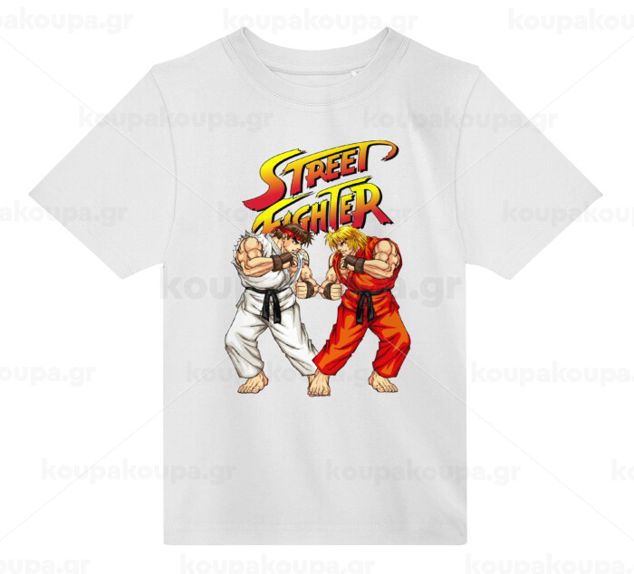 Street fighter, Άνετο παιδικό T-Shirt ΛΕΥΚΟ από 100% βαμβάκι, για κάθε μέρα. Vegan & OEKO-TEX πιστοποιημένο.