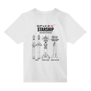 Space X, Άνετο παιδικό T-Shirt ΛΕΥΚΟ από 100% βαμβάκι, για κάθε μέρα. Vegan & OEKO-TEX πιστοποιημένο.