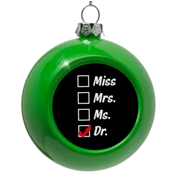 Miss, Mrs, Ms, DR, Green Christmas tree ornament bauble 8cm