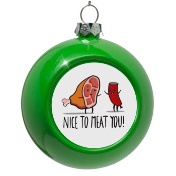 Nice to MEAT you, Green Christmas tree ornament bauble 8cm