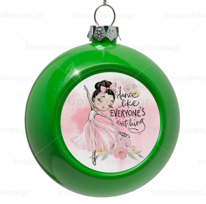 Dance Like everyone's watching, Green Christmas tree ornament bauble 8cm