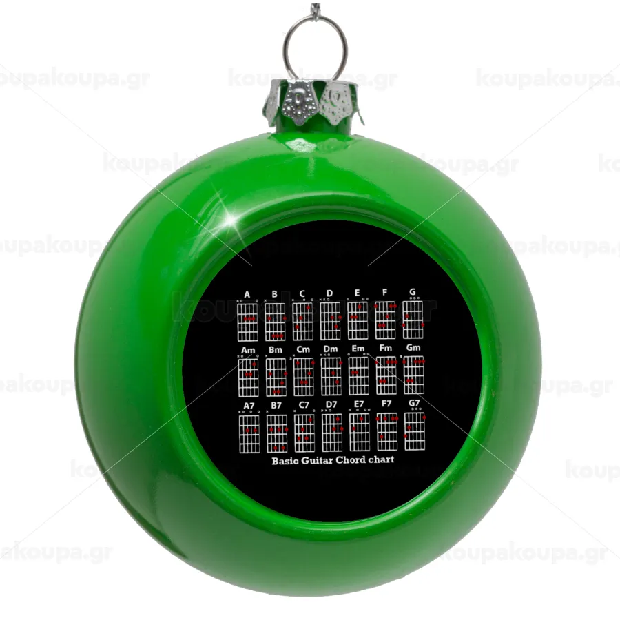 Guitar tabs, Green Christmas tree ornament bauble 8cm