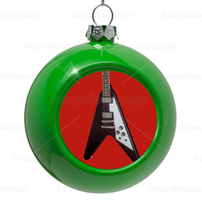 Guitar flying V, Green Christmas tree ornament bauble 8cm