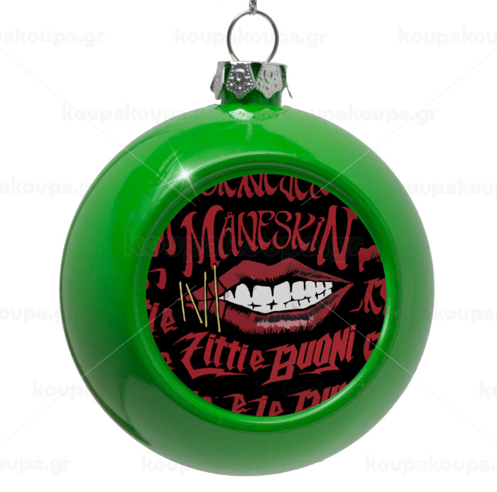 Maneskin lips, Green Christmas tree ornament bauble 8cm