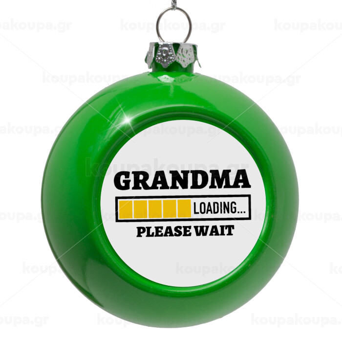 Grandma Loading, Green Christmas tree ornament bauble 8cm