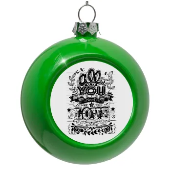 All you need is love, Green Christmas tree ornament bauble 8cm