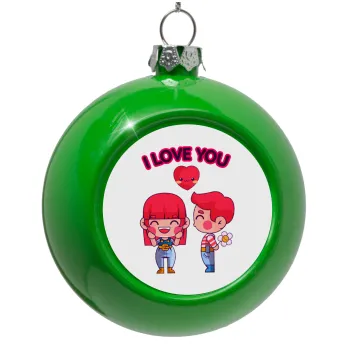 Couple, I love you, Green Christmas tree ornament bauble 8cm