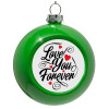 Love you forever, Green Christmas tree ornament bauble 8cm