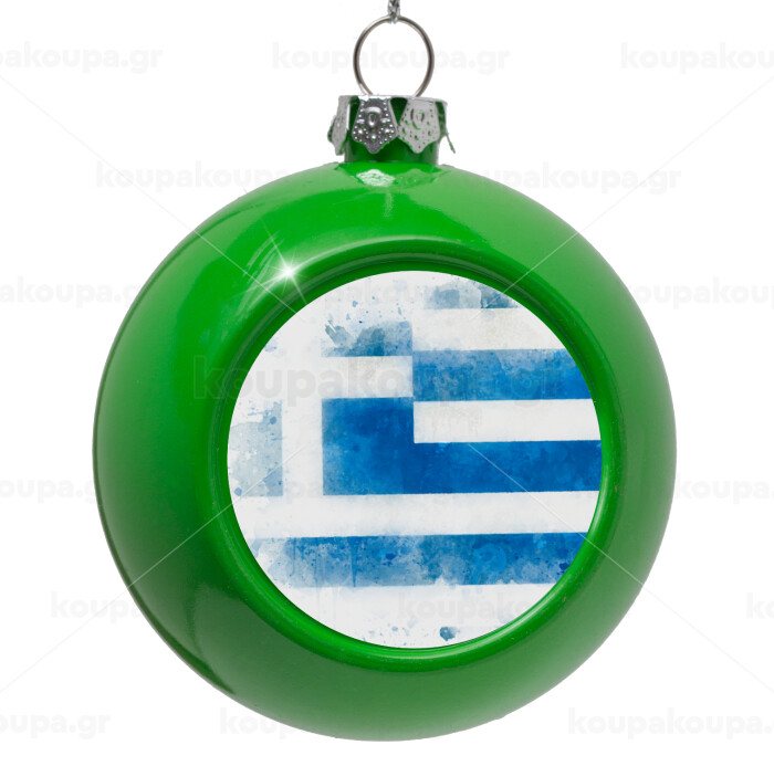 Ελληνική σημαία watercolor, Green Christmas tree ornament bauble 8cm