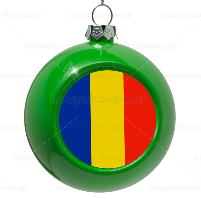 Romania flag, Green Christmas tree ornament bauble 8cm