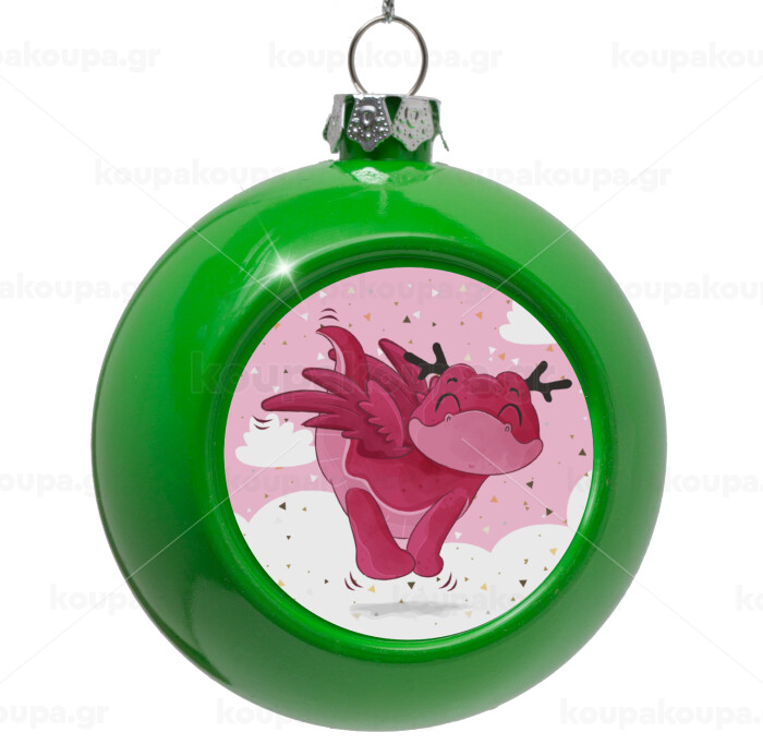 Flying Dyno, Green Christmas tree ornament bauble 8cm