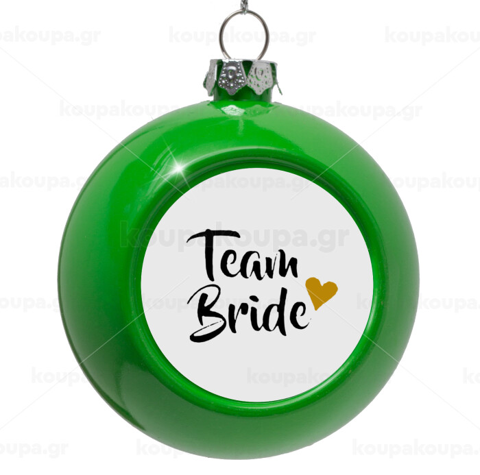Team Bride, Green Christmas tree ornament bauble 8cm