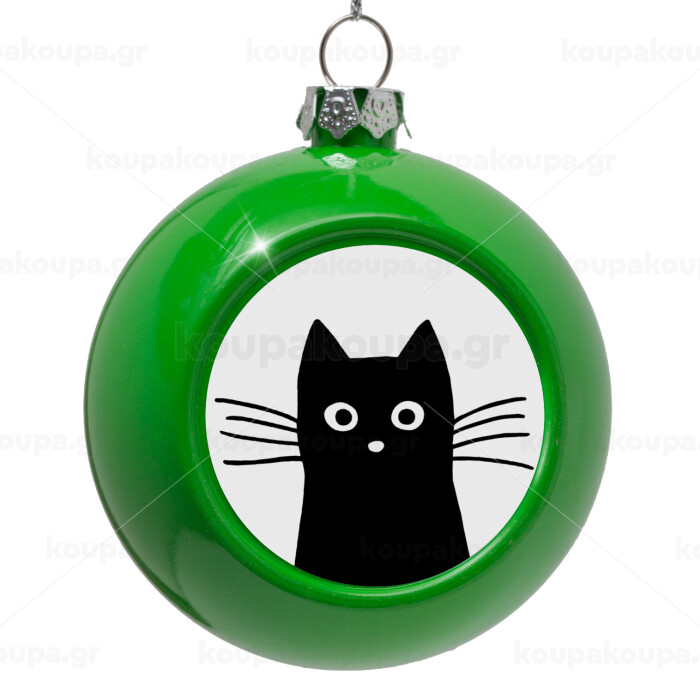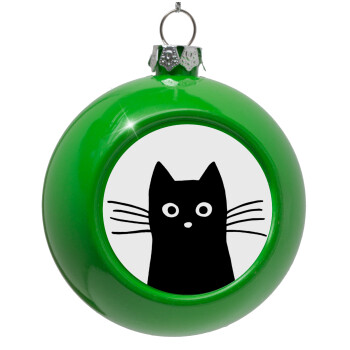 Black Cat, Green Christmas tree ornament bauble 8cm