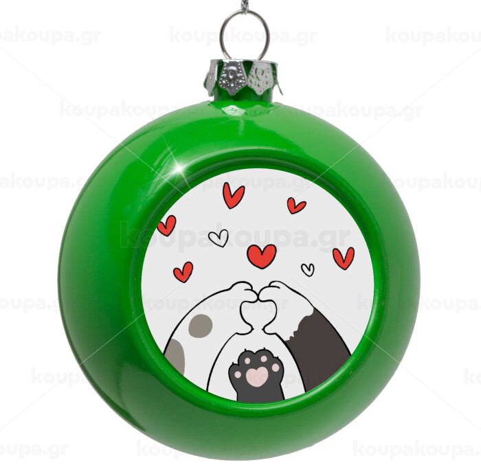 Cat paws, Green Christmas tree ornament bauble 8cm