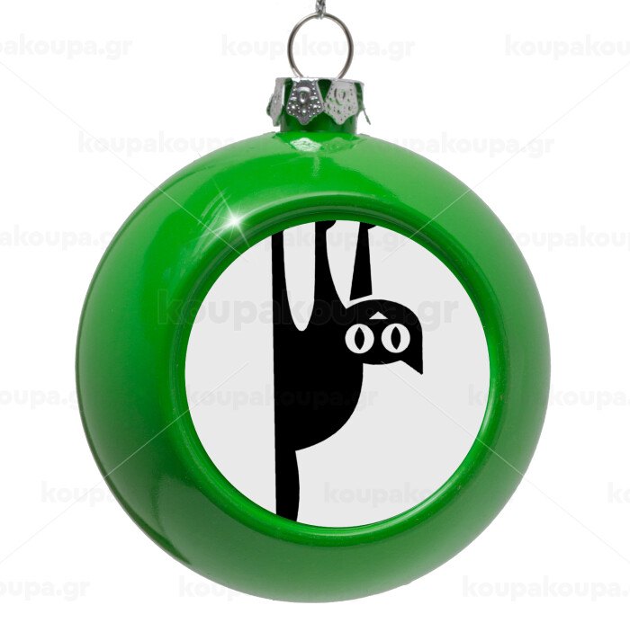 Cat upside down, Green Christmas tree ornament bauble 8cm