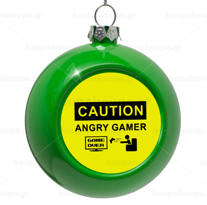 Caution, angry gamer!, Green Christmas tree ornament bauble 8cm